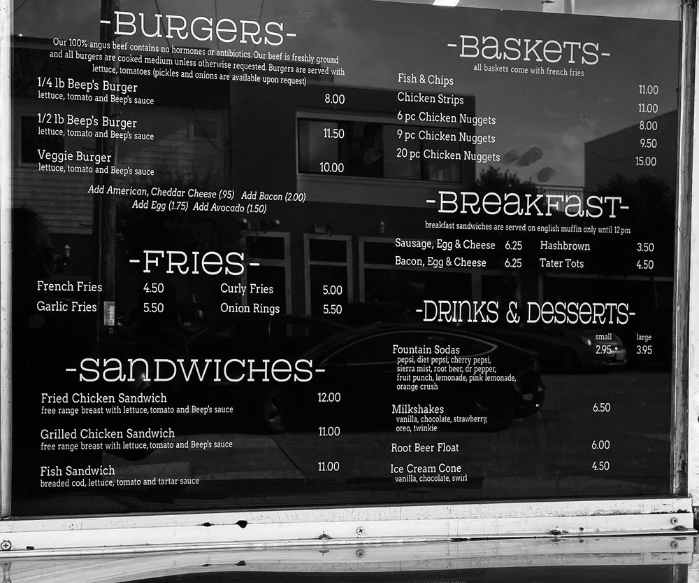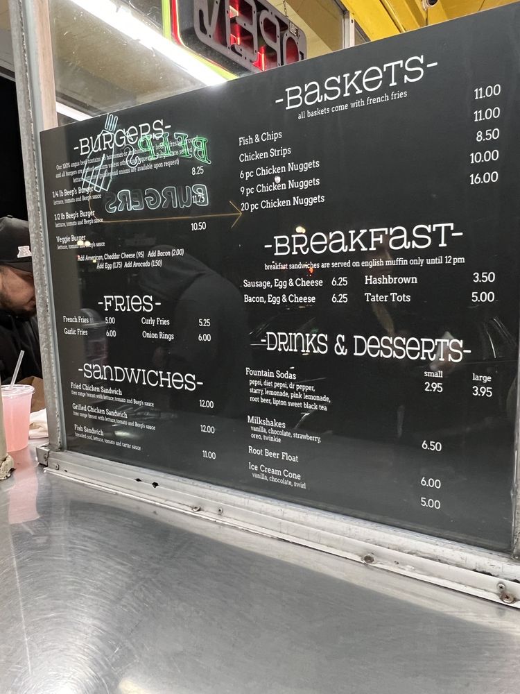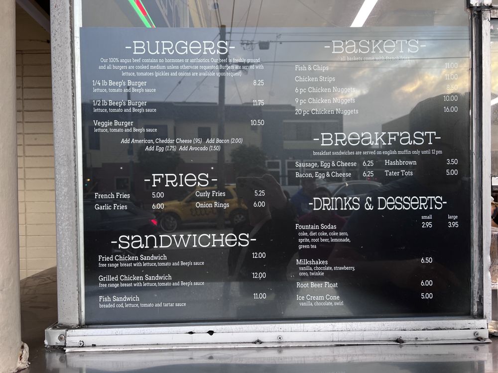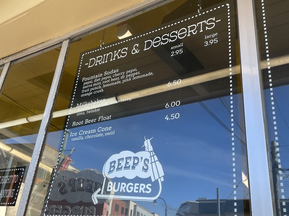 Introducing Beep's Burgers, a classic burger joint in San Francisco known for its iconic drive-in experience and exceptional menu. Located at 1051 Ocean Ave, Beep's Burgers offers a variety of options, including vegan and vegetarian choices, catering to a diverse array of tastes. The 1/4 lb Beep's Burger with cheddar cheese is a standout item, made from 100% Angus beef and served with fresh toppings in a soft bun. Pair it with their perfectly seasoned curly fries and a rich milkshake for a satisfying meal.